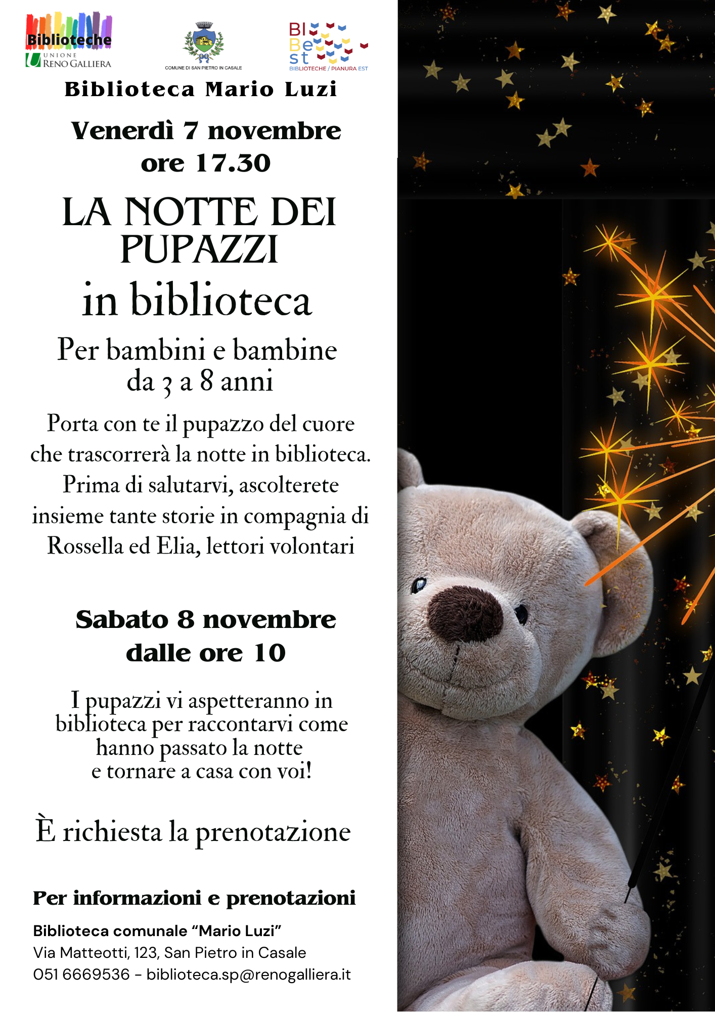 La notte dei pupazzi nelle biblioteche dell'Unione Reno Galliera